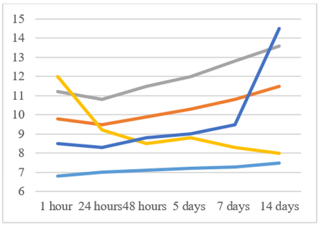 Figure 1. Dynamics of motor activity parameters following administration of the investigated preparations |