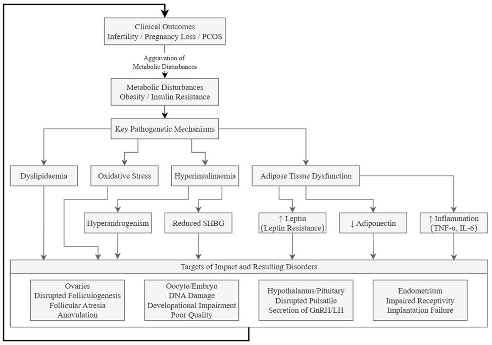 The reproductive health of the human population in the 21st century is under the cross-pressure of two global trends: demographic ageing and a parallel epidemic of metabolic disorders (Weitekamp et al., 2021). The intricate interplay between metabolic homeostasis and reproductive function has become a focal point of modern reproductive medicine (Chadchan et al., 2022). While energy deficit has long been recognised as a potent inhibitor of fertility, compelling evidence now confirms that energy excess and its associated metabolic disruptions – namely, insulin resistance, adipose tissue dysfunction, and chronic inflammation – constitute an equally powerful barrier to successful conception and gestation (Barbouni et al., 2025; Barraza-Ortega et al., 2025; Sasikala et al., 2026). These disturbances form a vicious cycle that impairs the hypothalamic-pituitary-ovarian axis, compromises oocyte quality, diminishes endometrial receptivity, and ultimately manifests as clinical outcomes such as anovulatory infertility and recurrent pregnancy loss (Chen et al., 2022; Potiris et al., 2024; Valera et al., 2025).