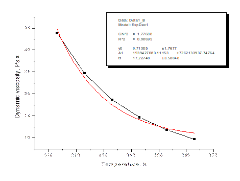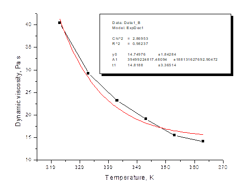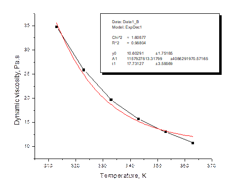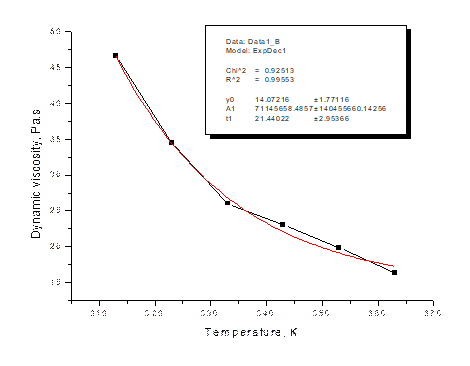 Figure 6. Dependence η =f(T) at shear rate 52.95s-1 |