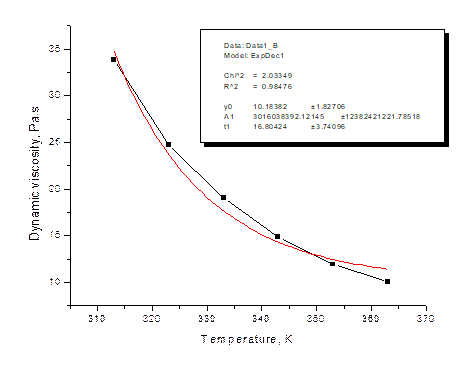 This article proposes an equation that shows the dependence of dynamic viscosity on temperature in exponential form with three parameters that depend on the studied oil. The found equation faithfully describes the non-Newtonian behavior of the studied oil in the temperature range.